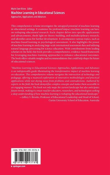 This comprehensive volume investigates the untapped potential of machine learning in educational settings. It examines the profound impact machine learning can have on reshaping educational research. Each chapter delves into specific applications and advancements, sheds light on theory-building, and multidisciplinary research, and identifies areas for further development. It encompasses various topics, such as machine-based learning in psychological assessment. It also highlights the power of machine learning in analyzing large-scale international assessment data and utilizing natural language…mehr
