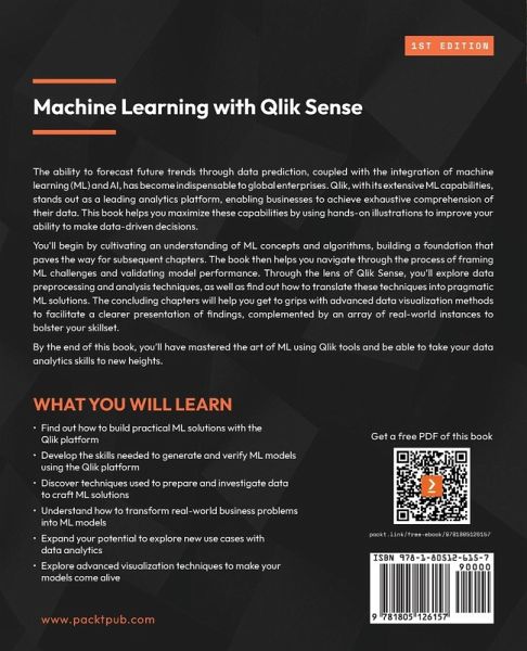 Master the art of machine learning by using the one-of-a-kind Qlik platform, and take your data analytics skills to the next levelKey FeaturesGain a solid understanding of machine learning concepts and learn to effectively define a problem Explore the application of machine learning principles within the Qlik platform Apply your knowledge of ML to real-world scenarios with the help of practical examples Purchase of the print or Kindle book includes a free PDF eBook Book Description The ability to forecast future trends through data prediction, coupled with the integration of ML and AI, has become indispensable to global enterprises. Qlik, with its extensive machine learning capabilities, stands out as a leading analytics platform enabling businesses to achieve exhaustive comprehension of their data. This book helps you maximize these capabilities by using hands-on illustrations to improve your ability to make data-driven decisions. You'll begin by cultivating an understanding of machine learning concepts and algorithms, and build a foundation that paves the way for subsequent chapters. The book then helps you navigate through the process of framing machine learning challenges and validating model performance. Through the lens of Qlik Sense, you'll explore data preprocessing and analysis techniques, as well as find out how to translate these techniques into pragmatic machine learning solutions. The concluding chapters will help you get to grips with advanced data visualization methods to facilitate a clearer presentation of findings, complemented by an array of real-world instances to bolster your skillset. By the end of this book, you'll have mastered the art of machine learning using Qlik tools and be able to take your data analytics journey to new heights.What you will learnFind out how to build practical machine learning solutions with the Qlik platform Develop the skills needed to generate and verify machine learning models using the Qlik platform Discover techniques used for preparing and investigating data to craft machine learning solutions Understand how to transform real-world business problems into machine learning models Expand your potential to new use cases with data analytics Explore advanced visualization techniques to make your models come alive Who this book is for If you're interested in data and analytics and are looking to extend your skillset to machine learning, this book is for you. Basic working knowledge of data, preferably with Qlik tools, will help you get started with this book. This is an excellent guide for anyone who wants to start using machine learning as part of their data analytics journey.Table of ContentsIntroduction to Machine Learning with Qlik Machine Learning Algorithms and Models with Qlik Data Literacy in Machine Learning Context Creating a Good Machine Learning Solution with the Qlik Platform Setting Up the Environments Preprocessing and Exploring Data with Qlik Sense Deploying and Monitoring Machine Learning Models Utilizing Qlik AutoML Advanced Data Visualisation Techniques for Machine Learning Solutions Examples and Case Studies Future Direction
