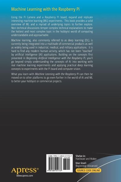 Machine learning, also commonly referred to as deep learning (DL), is currently being integrated into a multitude of commercial products as well as widely being used in industrial, medical, and military applications. It is hard to find any modern human activity, which has not been "touched" by artificial intelligence (AI) applications. Building on the concepts first presented in Beginning Artificial Intelligence with the Raspberry Pi, you'll go beyond simply understanding the concepts of AI into working with real machine learning experiments and applying practical deep learning concepts toexperiments with the Pi board and computer vision.