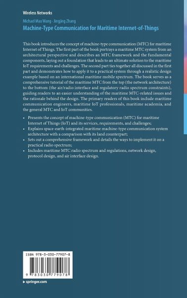 This book introduces the concept of machine-type communication (MTC) for maritime Internet of Things. The first part of the book portrays a maritime MTC system from an architectural perspective and describes an MTC framework and the fundamental components, laying out a foundation that leads to an ultimate solution to the maritime IoT requirements and challenges. The second part ties together all discussed in the first part and demonstrates how to apply it to a practical system through a realistic design example based on an international maritime mobile spectrum. The book serves as a comprehensive tutorial of the maritime MTC from the top (the network architecture) to the bottom (the air/radio interface and regulatory radio spectrum constraints), guiding readers to an easier understanding of the maritime MTC-related issues and the rationale behind the design. The primary readers of this book include maritime communication engineers, maritime IoT professionals, maritime academia, andthe general MTC and IoT communities.