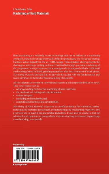 1. Machining of Hard Materials - Definition and Industrial Applications.- 2. Advanced Cutting Tools.- 3. Mechanics of Cutting and Chip Formation.- 4. Surface Integrity.- 5. Finite Element Modelling and Simulation.- 6. Computational Methods and Optimization