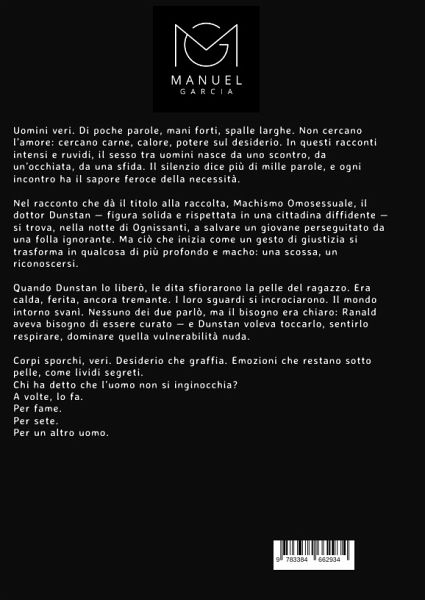 Uomini veri. Di poche parole, mani forti, spalle larghe. Non cercano l'amore: cercano carne, calore, potere sul desiderio. In questi racconti intensi e ruvidi, il sesso tra uomini nasce da uno scontro, da un'occhiata, da una sfida. Il silenzio dice più di mille parole, e ogni incontro ha il sapore feroce della necessità.Nel racconto che dà il titolo alla raccolta, Machismo Omosessuale, il dottor Dunstan - figura solida e rispettata in una cittadina diffidente - si trova, nella notte di Ognissanti, a salvare un giovane perseguitato da una folla ignorante. Ma ciò che inizia come un gesto di giustizia si trasforma in qualcosa di più profondo e macho: una scossa, un riconoscersi.Quando Dunstan lo liberò, le dita sfiorarono la pelle del ragazzo. Era calda, ferita, ancora tremante. I loro sguardi si incrociarono. Il mondo intorno svanì. Nessuno dei due parlò, ma il bisogno era chiaro: Ranald aveva bisogno di essere curato - e Dunstan voleva toccarlo, sentirlo respirare, dominare quellavulnerabilità nuda.Corpi sporchi, veri. Desiderio che graffia. Emozioni che restano sotto pelle, come lividi segreti.Chi ha detto che l'uomo non si inginocchia?A volte, lo fa.Per fame.Per sete.Per un altro uomo.