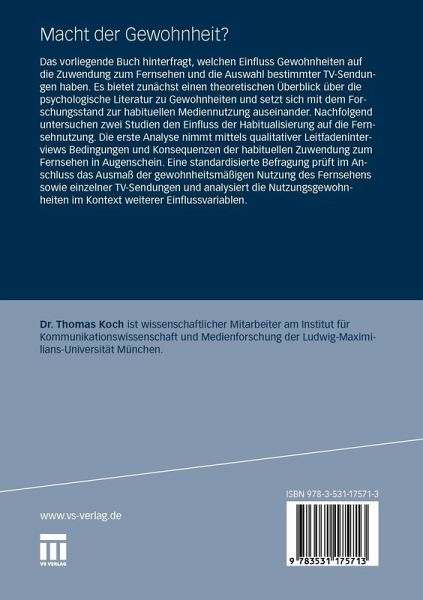 Das vorliegende Buch hinterfragt, welchen Einfluss Gewohnheiten auf die Zuwendung zum Fernsehen und die Auswahl bestimmter TV-Sendungen haben. Es bietet zunächst einen theoretischen Überblick über die psychologische Literatur zu Gewohnheiten und setzt sich mit dem Forschungsstand zur habituellen Mediennutzung auseinander. Nachfolgend untersuchen zwei Studien den Einfluss der Habitualisierung auf die Fernsehnutzung. Die erste Analyse nimmt mittels qualitativer Leitfadeninterviews Bedingungen und Konsequenzen der habituellen Zuwendung zum Fernsehen in Augenschein. Eine standardisierte Befragung prüft im Anschluss das Ausmaß der gewohnheitsmäßigen Nutzung des Fernsehens sowie einzelner TV-Sendungen und analysiert die Nutzungsgewohnheiten im Kontext weiterer Einflussvariablen.