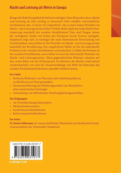 Bringt die bloße Knappheit überlebenswichtiger Güter Menschen dazu, Macht und Leistung als sehr wichtig zu bewerten? Oder schaffen wirtschaftliche Institutionen eine "Culture of Competition", die zu einer hohen Priorität von Macht- und Leistungswerten führt? Welche Rolle spielt die individuelle Positionierung innerhalb der sozialen Stratifikation? Dies sind Fragen, denen die vorliegende Studie mit Daten des European Social Surveys nachgeht. Empirisch zeigt sich, dass je niedriger die sozio-ökomomische Entwicklung von Gesellschaften, umso höher ist die Priorität von Macht- und Leistungswerten innerhalb der Bevölkerung. Ein umgekehrter Effekt ist für die individuelle Position in der sozialen Stratifikation zu beobachten. Je höher die Position in der sozialen Stratifikation, umso höher ist auch die individuelle Priorität in Macht- und Leistungswerten. Diese gegensätzliche Befunde scheinen auf den ersten Blick wie ein Widerspruch. Im Rahmen des Buchs wird jedoch veranschaulicht, wie sich die Zusammenhänge mit Hilfe des Konzepts der sozialen Produktionsfunktionen plausibel erklären lassen.