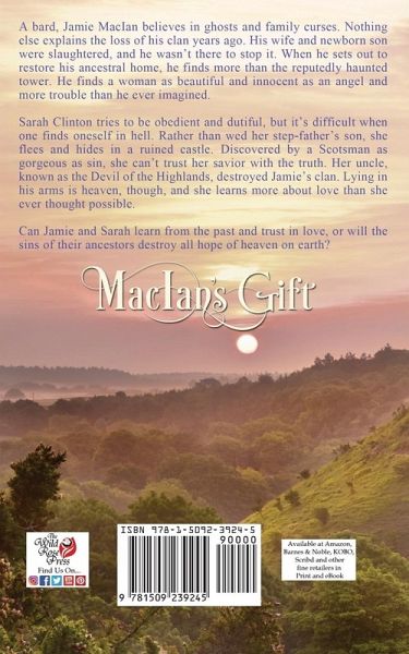 A bard, Jamie MacIan believes in ghosts and family curses. Nothing else explains the loss of his clan years ago. His wife and newborn son were slaughtered, and he wasn't there to stop it. When he sets out to restore his ancestral home, he finds more than the reputedly haunted tower. He finds a woman as beautiful and innocent as an angel and more trouble than he ever imagined. Sarah Clinton tries to be obedient and dutiful, but it's difficult when one finds oneself in hell. Rather than wed her step-father's son, she flees and hides in a ruined castle. Discovered by a Scotsman as gorgeous as sin, she can't trust her savior with the truth. Her uncle, known as the Devil of the Highlands, destroyed Jamie's clan. Lying in his arms is heaven, though, and she learns more about love than she ever thought possible. Can Jamie and Sarah learn from the past and trust in love, or will the sins of their ancestors destroy all hope of heaven on earth?