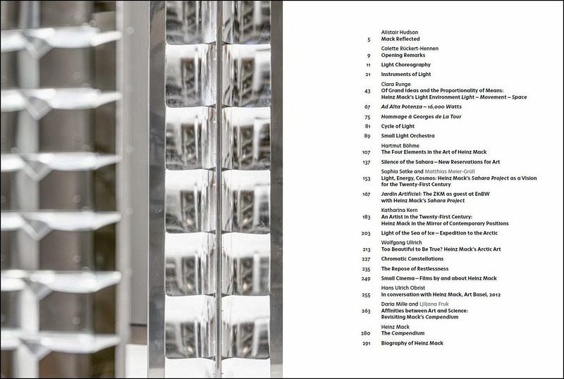 Heinz Mack war seiner Zeit schon immer weit voraus: Seine vor 65 Jahren konzipierten Reflektorwände und Lamellen-Plantagen nehmen gegenwärtige Photovoltaikanlagen vorweg. Seine Auseinandersetzung mit Luft, Wasser, Licht und Sand hilft, die akute Bedrohung natürlicher Ressourcen zu reflektieren. Empfand der Künstler die Wüstenlandschaften noch als leeren, freien Raum für seine Land-Art, symbolisieren Arktis und Sahara heute den Klimawandel und die Zerstörung der Natur. Facettenreich und mit weitem Blick zeigt die Publikation Heinz Mack als einen Künstler des 21. Jahrhunderts.