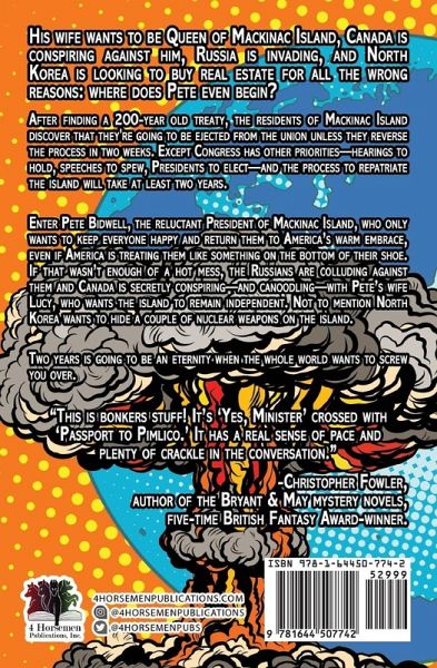 His wife wants to be Queen of Mackinac Island, Canada is conspiring against him, Russia is invading, and North Korea is looking to buy real estate for all the wrong reasons: where does Pete even begin? After finding a 200-year old treaty, the residents of Mackinac Island discover that they're going to be ejected from the union unless they reverse the process in two weeks. Except Congress has other priorities-hearings to hold, speeches to spew, Presidents to elect-and the process to repatriate the island will take at least two years. Enter Pete Bidwell, the reluctant President of Mackinac Island, who only wants to keep everyone happy and return them to America's warm embrace, even if America is treating them like something on the bottom of their shoe. If that wasn't enough of a hot mess, the Russians are colluding against them and Canada is secretly conspiring-and canoodling-with Pete's wife Lucy, who wants the island to remain independent. Not to mention North Korea wants to hide a couple of nuclear weapons on the island. Two years is going to be an eternity when the whole world wants to screw you over.