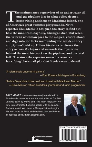 The maintenance supervisor of an underwater oil and gas pipeline dies in what police deem a horse-riding accident on Mackinac Island, one of America's great summer playgrounds. News reporter Nick Steele is assigned the story to find out how the man from Bay City, Michigan died. But when the veteran newsman goes to the magical resort island and digs into the facts surrounding the accident, they simply don't add up. Follow Steele as he chases the story across Michigan and unravels the mysteries behind the man, his work on the pipeline, and his fatal fall. The story the reporter unearths reveals a horrifying blackmail plot that Steele races to derail.