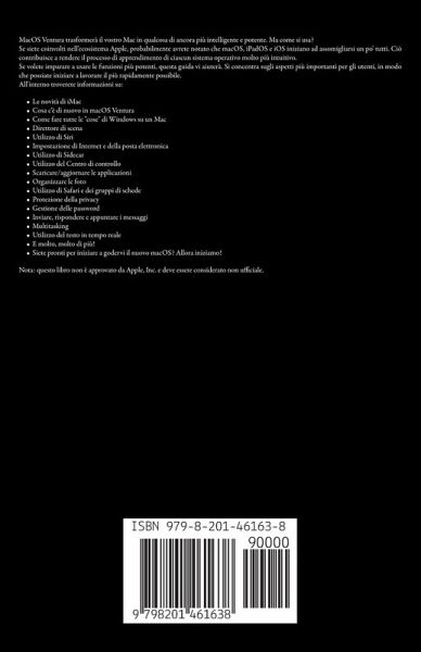 MacOS Ventura trasformerà il vostro Mac in qualcosa di ancora più intelligente e potente. Ma come si usa? Se siete coinvolti nell'ecosistema Apple, probabilmente avrete notato che macOS, iPadOS e iOS iniziano ad assomigliarsi un po' tutti. Ciò contribuisce a rendere il processo di apprendimento di ciascun sistema operativo molto più intuitivo. Se volete imparare a usare le funzioni più potenti, questa guida vi aiuterà. Si concentra sugli aspetti più importanti per gli utenti, in modo che possiate iniziare a lavorare il più rapidamente possibile. All'interno troverete informazioni su:Le novità di iMac Cosa c'è di nuovo in macOS Ventura Come fare tutte le "cose" di Windows su un Mac Direttore di scena Utilizzo di Siri Impostazione di Internet e della posta elettronica Utilizzo di Sidecar Utilizzo del Centro di controllo Scaricare/aggiornare le applicazioni Organizzare le foto Utilizzo di Safari e dei gruppi di schede Protezione della privacy Gestione delle password Inviare, rispondere e appuntare i messaggi Multitasking Utilizzo del testo in tempo reale E molto, molto di più! Siete pronti per iniziare a godervi il nuovo macOS? Allora iniziamo! Nota: questo libro non è approvato da Apple, Inc. e deve essere considerato non ufficiale.