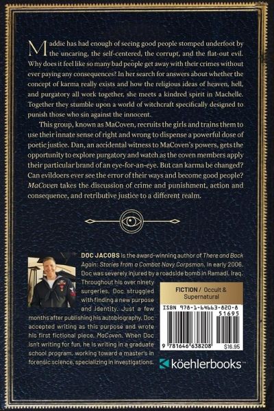 Doc Jacobs is the award-winning author of There and Back Again: Stories from a Combat Navy Corpsman. In early 2006, Doc was severely injured by a roadside bomb in Ramadi, Iraq. Throughout his over ninety surgeries, Doc struggled with finding a new purpose and identity. Just a few months after publishing his autobiography, Doc accepted writing as this purpose and wrote his first fictional piece, MaCoven. When Doc isn't writing for fun, he is writing in a graduate school program, working toward a master's in forensic science, specializing in investigations.