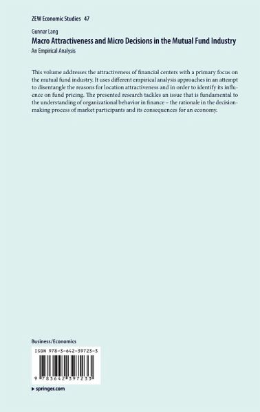 This volume addresses the attractiveness of financial centers with a primary focus on the mutual fund industry. It uses different empirical analysis approaches in an attempt to disentangle the reasons for location attractiveness and in order to identify its influence on fund pricing. The presented research tackles an issue that is fundamental to the understanding of organizational behavior in finance - the rationale in the decision-making process of market participants and its consequences for an economy.