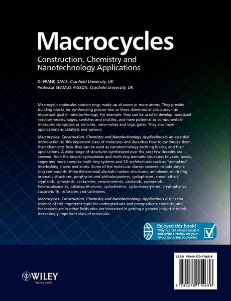 Macrocycles: Construction, Chemistry and Nanotechnology Applications distills the essence of this important topic for undergraduate and postgraduate students, and for researchers in other fields interested in getting a general insight into this increasingly important class of molecules.