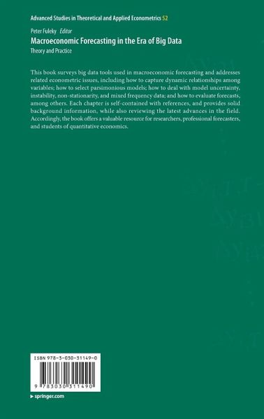 This book surveys big data tools used in macroeconomic forecasting and addresses related econometric issues, including how to capture dynamic relationships among variables; how to select parsimonious models; how to deal with model uncertainty, instability, non-stationarity, and mixed frequency data; and how to evaluate forecasts, among others. Each chapter is self-contained with references, and provides solid background information, while also reviewing the latest advances in the field. Accordingly, the book offers a valuable resource for researchers, professional forecasters, and students of quantitative economics.