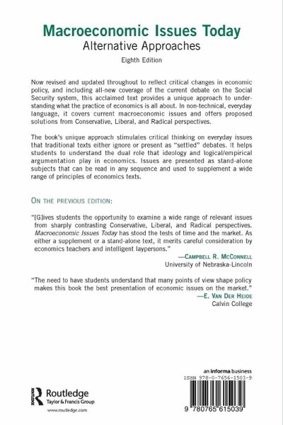 Now revised and updated to reflect critical changes in economic policy since the last edition, Macroeconomic Issues Today, Eighth Edition, provides Conservative, Liberal, and Radical interpretations and solutions for seven current macroeconomic issues, including all-new coverage of the Social Security debate. An instructor's manual with a test bank and discussion questions is available to professors who adopt the text, and PowerPoint downloads are available as teaching aids.