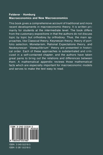 One. Fundamentals.- Some Methodological Considerations.- A Historical Survey.- National Income Accounting.- Two. Macroeconomics.- The Classical Theory.- The Keynesian Theory.- Political Implications: A Comparison.- Three. New Macroeconomics.- The Real-Balance Effect.- The Theory of Portfolio Selection.- Monetarism.- New Classical Economics.- Neokeynesian Theory.- Four. Mathematical Appendix.- Calculus of Functions of a Single Variable.- Linear Algebra.- Calculus of Functions of Several Variables.- Implicit Functions.- Ordinary Differential Equations.- Author Index.