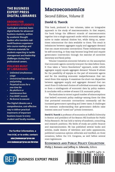 This book, produced in two volumes, takes an integrative approach to the study of macroeconomics. In that respect, the book brings the different strands of macroeconomics together into a single approach under which economic agents strive to make rational choices but, while doing so, sometimes misconstrue the data available to them. The result is imbalances between aggregate supply and aggregate demand that can cause economic contractions. These imbalances may be self-correcting, or they may become long-lived and require government intervention through the exercise of corrective monetary and fiscal policy. Volume I examines economic behavior on the assumption that economic agents correctly interpret the data before them. It thus takes a "micro foundations" approach, under which aggregate supply equals aggregate demand. Volume II allows for the possibility of myopia on the part of economic agents and for the resulting economic malperformance that can result from this myopia. It examines the short-run disparities between aggregate supply and aggregate demand that can result from ill-informed choices of individual economic agents or from a misdiagnosis of economic data by policy makers. It concludes with a review of recent U.S. economic policy. The book aims to correct a good number of misconceptions that bedevil economic policymaking-among them the idea that protracted economic contractions necessarily call for increased government spending and lower taxes. It challenges the common understanding that government deficits raise interest rates and "crowd out" private investment.