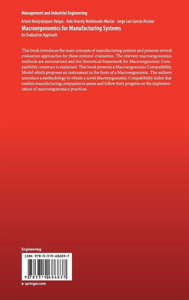 This book introduces the main concepts of manufacturing systems and presents several evaluation approaches for these systems' evaluation. The relevant macroergonomics methods are summarized and the theoretical framework for Macroergonomic Compatibility construct is explained. This book presents a Macroergonomic Compatibility Model which proposes an instrument in the form of a Macroergonomic. The authors introduce a methodology to obtain a novel Macroergonomic Compatibility Index that enables manufacturing companies to assess and follow their progress on the implementation of macroergonomics practices.