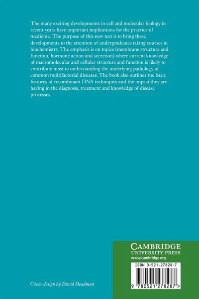 The many exciting developments in cell and molecular biology in recent years have important implications for the practice of medicine. The purpose of this new text is to bring these developments to the attention of undergraduates taking courses in biochemistry. The emphasis is on topics (membrane structure and function, hormone action and secretion) where current knowledge of macromolecular and cellular structure and function is likely to contribute most to understanding the underlying pathology of common multifactorial diseases. The book also outlines the basic features of recombinant DNA techniques and the impact they are having in the diagnosis, treatment and knowledge of disease processes.