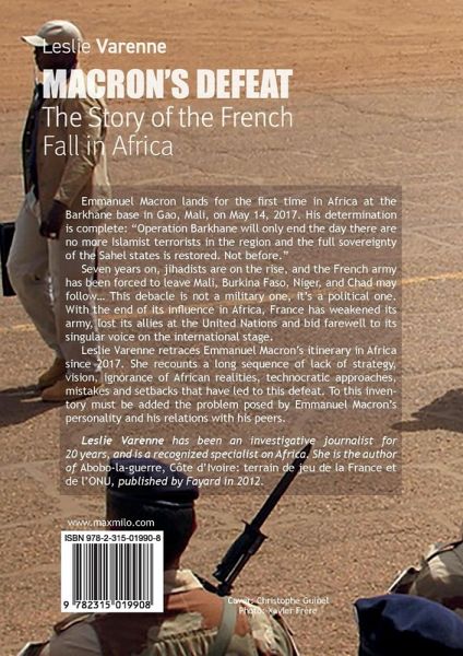 Emmanuel Macron lands for the first time in Africa at the Barkhane base in Gao, Mali, on May 14, 2017. His determination is complete: "Operation Barkhane will only end the day there are no more Islamist terrorists in the region and the full sovereignty of the Sahel states is restored. Not before." Seven years on, jihadists are on the rise, and the French army has been forced to leave Mali, Burkina Faso, Niger, and Chad may follow... This debacle is not a military one, it's a political one. With the end of its influence in Africa, France has weakened its army, lost its allies at the United Nations and bid farewell to its singular voice on the international stage.Leslie Varenne retraces Emmanuel Macron's itinerary in Africa since 2017. She recounts a long sequence of lack of strategy, vision, ignorance of African realities, technocratic approaches, mistakes and setbacks that have led to this defeat. To this inventory must be added the problem posed by Emmanuel Macron's personality and his relations with his peers.