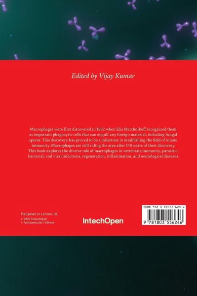 Macrophages were first discovered in 1882 when Elia Metchnikoff recognized them as important phagocytic cells that can engulf any foreign material, including fungal spores. This discovery has proved to be a milestone in establishing the field of innate immunity. Macrophages are still ruling the area after 140 years of their discovery. This book explores the diverse role of macrophages in vertebrate immunity, parasitic, bacterial, and viral infections, regeneration, inflammation, and neurological diseases.