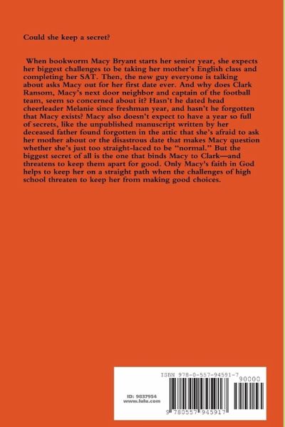 When bookworm Macy Bryant starts her senior year, she expects her biggest challenges to be taking her mother's English class and completing her SAT. Then, the new guy everyone is talking about asks Macy out for her first date ever. And why does Clark Ransom, Macy's next door neighbor and captain of the football team, seem so concerned about it? Hasn't he dated head cheerleader Melanie since freshman year, and hasn't he forgotten that Macy exists? Macy also doesn't expect to have a year so full of secrets, like the unpublished manuscript written by her deceased father found forgotten in the attic that she's afraid to ask her mother about or the disastrous date that makes Macy question whether she's just too straight-laced to be "normal." But the biggest secret of all is the one that binds Macy to Clark-and threatens to keep them apart for good. Only Macy's faith in God helps to keep her on a straight path when the challenges of high school threaten to keep her from making good choices.