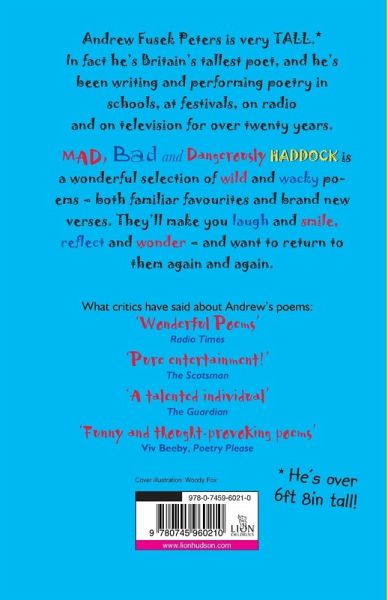 At 6'8 1/2", Andrew Fusek Peters is Britain's tallest poet. His collections include Sadderday and Funday, Love Hate and My Best Mate, and Poems with Attitude (the only poetry collection to have ever made the Carnegie long-list). This book combines a selection of the best of his published work, plus new material specially written with Lion's audience in mind. Andrew's poems focus on themes including family, friendship, pets, seasons and schools, and mix the side-splitting with the serious - making a varied and valuable collection.