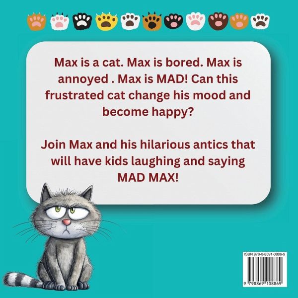 Does your child sometimes get bored? Frustrated? MAD? Well Max, the cat, does too! Max is a cat. Max is bored. Max is annoyed. Max is MAD! Can this frustrated cat change his mood and become Happy?! Written by an elementary school teacher, this book is kid tested and approved! Kids will laugh while relating to Max and his frustration with not getting his way, and with others! They will delight in exclaiming that Max is a MAD MAX! Will anything make Max happy? Read to find out! Make storytime fun, interactive and a little MAD with MAD MAX!