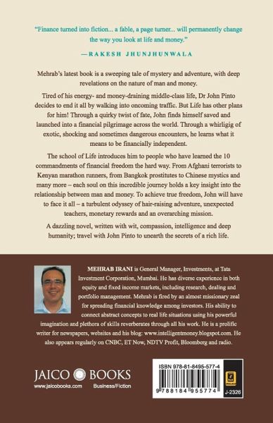 A Financial Adventure Mehrab's latest book is a sweeping tale of mystery and adventure, with deep revelations on the nature of man and money. Tired of his energy- and money-draining middle-class life, Dr John Pinto decides to end it all by walking into oncoming traffic. But Life has other plans for him! Through a quirky twist of fate, John finds himself saved and launched into a financial pilgrimage across the world. Through a whirligig of exotic, shocking and sometimes dangerous encounters, he learns what it means to be financially independent. The school of Life introduces him to people who have learned the 10 commandments of financial freedom the hard way. From Afghani terrorists to Kenyan marathon runners, from Bangkok prostitutes to Chinese mystics and many more - each soul on this incredible journey holds a key insight into the relationship between man and money. To achieve true freedom, John will have to face it all - a turbulent odyssey of hair-raising adventure, unexpected teachers, monetary rewards and an overarching mission. A dazzling novel, written with wit, compassion, intelligence and deep humanity; travel with John Pinto to unearth the secrets of a rich life. MEHRAB IRANI is General Manager, Investments, at Tata Investment Corporation, Mumbai. He has diverse experience in both equity and fixed income markets, including research, dealing and portfolio management. Mehrab is fired by an almost missionary zeal for spreading financial knowledge among investors. His ability to connect abstract concepts to real life situations using his powerful imagination and plethora of skills reverberates through all his work. He is a prolific writer for newspapers, websites and his blog: www.intelligentmoney.blogspot.com. He also appears regularly on CNBC, ET Now, NDTV Profit, Bloomerg and radio.