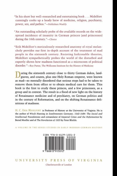 During the sixteenth century close to thirty German dukes, landgraves, and counts, plus one Holy Roman emperor, were known as mad- so mentally disordered that serious steps had to be taken to remove them from office or to obtain medical care for them. This book is the first study these princes, and a few princesses, as a group in context. The result is a flood of new light on the history of Renaissance medicine and of psychiatry, on German politics and in the century of Reformation, and on the shifting Renaissance definitions of madness.