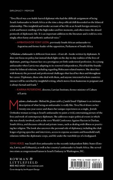 Madame Ambassador is an intimate description of what being an ambassador is really like. Tova Herzl draws on her twenty-one year career and shares her unique experiences as a single, Jewish orthodox woman serving as Israel’s Ambassador to paint a vivid, entertaining picture of the lives and work of contemporary diplomats.