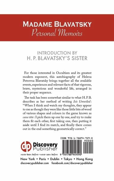 For those interested in Occultism and its greatest modern exponent, this Autobiography of H. P. Blavatsky brings together all the available events, experiences and relevant facts of that vigorous, brave, mysterious and wonderful life, arranged in their proper sequence. The task has been somewhat similar to what H. P. B. describes as her method of writing Isis Unveiled "When I think and watch my thoughts, they appear to me as though they were like those little bits of wood of various shapes and colours in the game known as casse tete I pick them up one by one, and try to make them fit each other, first taking one, then putting it aside until I find its match, and finally there comes out in the end something geometrically correct." With an introduction by H. P. Blavatsky's sister, Vera Petrovna de Zhelihovsky.