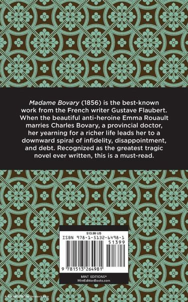 "Perhaps we identify with Emma because we too feel an emptiness at the center of things-an emptiness we try to fill with books, with fantasies, with sex, with things. Her yearning is nothing more or less than the human condition in the modern world. Her search for ecstasy is ours."-Erica Jong "Madame Bovaryhas a perfection that not only stamps it, but that makes it stand almost alone: it holds itself with such a supreme unapproachable assurance as both excites and defies judgment."-Henry James When Gustave Flaubert's debut novel Madame Bovary (1856) was published it had already created a great storm of both repulsion and profound admiration; it is now recognized as one of the most important works of literature ever written. When the story initially appeared in serial form it was attacked as a work of blatant indecency , and Flaubert was thrust into immediate celebrity. In the resulting obscenity trial, the author was acquitted, and by its publication date its existence was well known in France. Immediately a bestseller, the French public embraced the book with polarity; many repugnant with its attack on convention, and many recognizing its great humanity and depth. The novel begins with the introduction of Charles Bovary, an unremarkable man who becomes a country doctor in the north of France. During one of his rounds he falls under the spell of Emma Rouault, the beautiful daughter of one of his patients. When Bovary's wife unexpectedly passes away, he marries Emma, whose expectation of life becomes increasingly unfulfilled. After the birth of her child, she spins into a series of uncontrollable urges and bad choices that leads to her tragic downfall. With its unique shifting of perspectives, deep humanity, and bleak honesty, Madame Bovary is a classic that must be read. With an eye-catching new cover, and professionally typeset manuscript, this edition of Madame Bovary is both modern and readable. Since our inception in 2020, Mint Editions has kept sustainability and innovation at the forefront of our mission. Each and every Mint Edition title gets a fresh, professionally typeset manuscript and a dazzling new cover, all while maintaining the integrity of the original book. With thousands of titles in our collection, we aim to spotlight diverse public domain works to help them find modern audiences. Mint Editions celebrates a breadth of literary works, curated from both canonical and overlooked classics from writers around the globe.