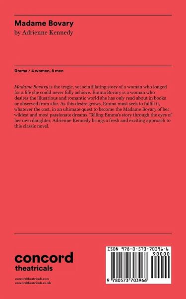 Madame Bovary is the tragic, yet scintillating story of a woman who longed for a life she could never fully achieve. Emma Bovary is a woman who desires the illustrious and romantic world she has only read about in books or observed from afar. As this desire grows, Emma must seek to fulfill it, whatever the cost, in an ultimate quest to become the Madame Bovary of her wildest and most passionate dreams. Telling Emma's story through the eyes of her own daughter, Adrienne Kennedy brings a fr