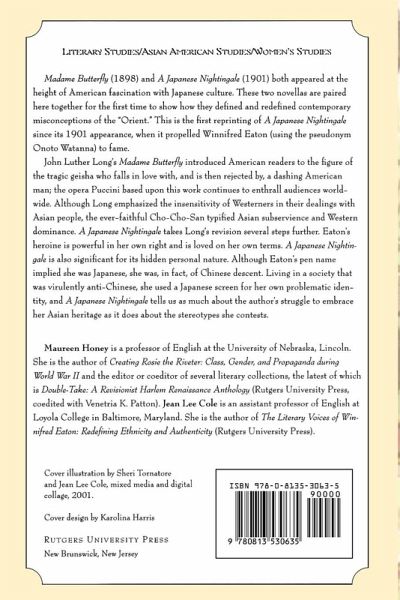 Madame Butterfly (1898) and A Japanese Nightingale (1901) both appeared at the height of fin-de-siecle American fascination with Japanese culture, which was in part spurred by the Japanese exhibits on display at the 1893 Chicago World's Fair. These two novellas -- usually dismissed by literary critics and scholars because of their stereotypical treatment of Asian women -- are paired here together for the first time to show how they defined and redefined (often subversively) contemporary misconceptions of the "Orient." This is the first reprinting of A Japanese Nightingale since its 1901 appearance, when it propelled Winnifred Eaton to fame. John Luther Long's Madame Butterfly introduced American readers to the figure of the tragic geisha who falls in love with, and then is rejected by, a dashing American man. Although Long emphasized the insensitivity of Westerners in their dealings with Asian people, the self-annihilating, ever-faithful Cho-Cho-San typified Asian subservience and Western dominance in ways that audiences continue to find appealing even today. Eaton's A Japanese Nightingale, in contrast, has been long forgotten. Yet it provides present-day readers with a fascinating counterimage of the suicidal geisha: Eaton's heroine is powerful in her own right and is loved on her own terms. Eaton's novel is also significant for its hidden personal nature. Although she wrote under the Japanese pen name of Onoto Watanna, Eaton was half Chinese. Living in a society that was virulently anti-Chinese, she used a Japanese screen for her own problematic identity.