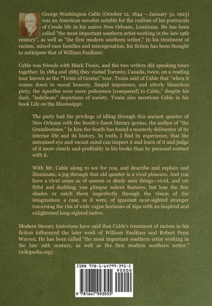 George Washington Cable (October 12, 1844 - January 31, 1925) was an American novelist notable for the realism of his portrayals of Creole life in his native New Orleans, Louisiana. He has been called "the most important southern artist working in the late 19th century", as well as "the first modern southern writer." In his treatment of racism, mixed-race families and miscegenation, his fiction has been thought to anticipate that of William Faulkner. He also wrote articles critical of contemporary society. Due to hostility against him after two 1885 essays encouraging racial equality and opposing Jim Crow, Cable moved with his family to Northampton, Massachusetts. He lived there for the next thirty years, then moved to Florida. Cable was friends with Mark Twain, and the two writers did speaking tours together. In 1884 and 1885 they visited Toronto, Canada, twice, on a reading tour known as the "Twins of Genius" tour. Twain said of Cable that "when it comes down to moral honesty, limpid impotence, and utterly blameless piety, the Apostles were mere policemen [compared] to Cable," despite his dark, "indelicate" depictions of society. Twain also mentions Cable in his book Life on the Mississippi: The party had the privilege of idling through this ancient quarter of New Orleans with the South's finest literary genius, the author of "the Grandissimes." In him the South has found a masterly delineator of its interior life and its history. In truth, I find by experience, that the untrained eye and vacant mind can inspect it and learn of it and judge of it more clearly and profitably in his books than by personal contact with it. With Mr. Cable along to see for you, and describe and explain and illuminate, a jog through that old quarter is a vivid pleasure. And you have a vivid sense as of unseen or dimly seen things--vivid, and yet fitful and darkling; you glimpse salient features, but lose the fine shades or catch them imperfectly through the vision of the imagination: a case, as it were, of ignorant near-sighted stranger traversing the rim of wide vague horizons of Alps with an inspired and enlightened long-sighted native. Modern literary historians have said that Cable's treatment of racism in his fiction influenced the later work of William Faulkner and Robert Penn Warren. He has been called "the most important southern artist working in the late 19th century, as well as the first modern southern writer." In 2008 a new edition of his history of the South, including footnotes and research, was published by Louisiana State University Press under the title, The New Orleans of George Washington Cable: The 1887 Census Office Report, edited and with an introduction by Lawrence N. Powell. Cable may have coined the term "authors' editor", in his 1910 tribute to his editor Richard Watson Gilder, when he wrote "I think he was peculiarly an authors' editor, and not merely a publishers'."; this is the earliest known use of the term in print. (wikipedia.org)