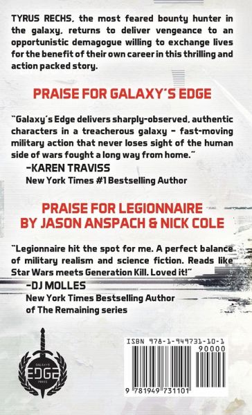 TYRUS RECHS, the most feared bounty hunter in the galaxy, returns to deliver vengeance to an opportunistic demagogue willing to exchange lives for the benefit of their own career in this thrilling and action packed story.