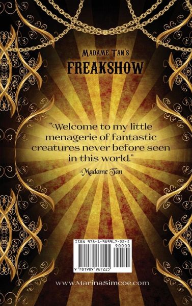 A different kind of fae. Mysterious and tragic, Madame Tan's menagerie is a twilight zone between two worlds. It's filled with fantastic animals never before seen on Earth. But Madame is a sinister creature. She also displays sentient beings she steals from the magical kingdom of Nerifir. ______________________ Madame Tan's Freakshow trilogy is complete! This collection includes all 3 Paranormal Fantasy Romance novels in the Madame Tan's Freakshow trilogy: Call of Water, Madness of the Moon, and Power of Rage, set in Marina Simcoe's world of the River of Mists. ______________________ Contains graphic scenes of intimacy and some violence. Intended for mature readers.