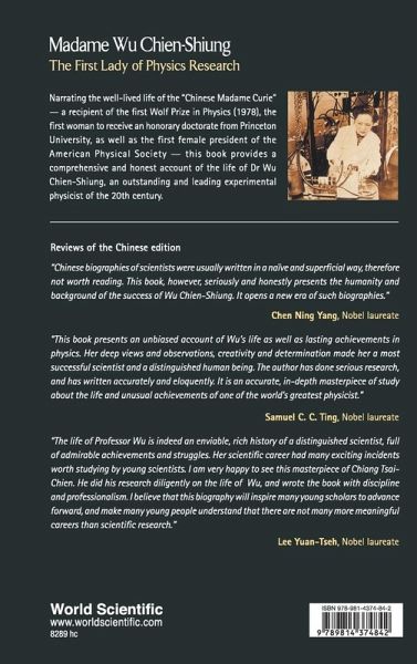 Narrating the well-lived life of the "Chinese Madame Curie" a recipient of the first Wolf Prize in Physics (1978), the first woman to receive an honorary doctorate from Princeton University, as well as the first female president of the American Physics Society this book provides a comprehensive and honest account of the life of Dr Chien-Shiung Wu, an outstanding and leading experimental physicist of the 20th century.