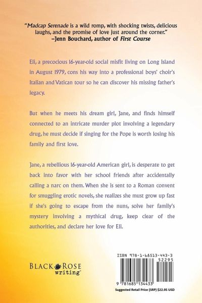 "A glorious rom-com caper delivered with genuine wit and panache. It's one laugh-out-loud moment after another with mayhem and intrigue that will keep you laughing and guessing until the very end. You won't read a funnier book all year." -F.M.A. Dixon, author of The Little House on Everywhere Street Eli, a precocious 16-year-old social misfit living on Long Island in August 1979, cons his way into a professional boys' choir's Italian and Vatican tour so he can discover his missing father's legacy. But when he meets his dream girl, Jane, and finds himself connected to an intricate murder plot involving a legendary drug, he must decide if singing for the Pope is worth losing his family and first love. Jane, a rebellious 16-year-old American girl, is desperate to get back into favor with her school friends after accidentally calling a narc on them. When she is sent to a Roman convent for smuggling erotic novels, she realizes she must grow up fast if she's going to escape from the nuns, solve her family's mystery involving a mythical drug, keep clear of the authorities, and declare her love for Eli.