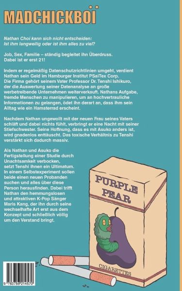 Nathan Choi kann sich nicht entscheiden: Ist ihm langweilig oder ist ihm alles zu viel?Job, Sex, Familie - ständig begleitet ihn Überdruss. Dabei ist er erst 21!Indem er regelmäßig Datenschutzrichtlinien umgeht, verdient Nathan sein Geld im Hamburger Institut PSaiTex Corp. Die Firma gehört seinem Vater Professor Dr. Tenshi Ishikuro, der die Auswertung seiner Datenanalyse an große werbetreibende Unternehmen weiterverkauft. Nathans Aufgabe, fremde Menschen zu manipulieren, um an hochvertrauliche Informationen zu gelangen, ödet ihn derart an, dass ihm sein Alltag wie ein Hamsterrad erscheint.Nachdem Nathan ungewollt mit der neuen Frau seines Vaters schläft und dabei nichts fühlt, verbringt er eine Nacht mit seiner Stiefschwester. Seine Hoffnung, dass es mit Asuko anders ist, wird gnadenlos enttäuscht. Das toxische Verhältnis zu Tenshi verstärkt sich dadurch massiv.Als Nathan und Asuko die Fertigstellung einer Studie durch Unachtsamkeit verbocken, setzt Tenshi ihnen ein Ultimatum. Ineinem Selbstexperiment sollen beide einen neuen Probanden suchen und alles über diese Person herausfinden. Dabei trifft Nathan den hemmungslosen und attraktiven K-Pop Sänger Maris Kang, der ihn durch seine wechselhafte Art erst aus dem Konzept und schließlich völlig um den Verstand bringt.