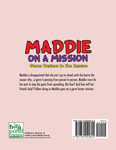 Maddie is disappointed that she can't go to school until she learns the reason why...a germ is passing from person to person. Maddie must do her part to stop the germ from spreading. But how? Follow along as Maddie goes on a germ buster mission.
