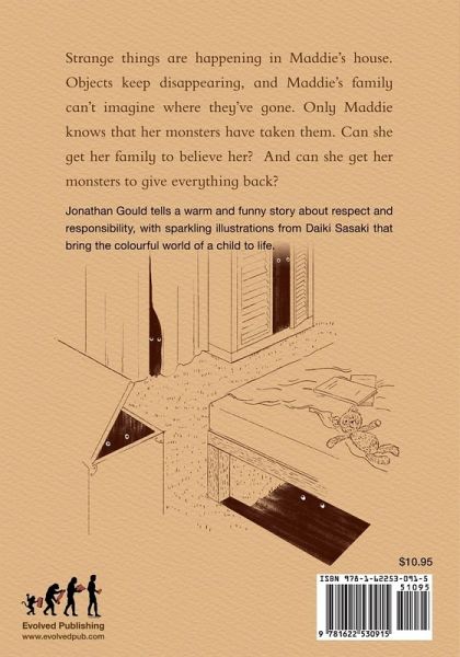Monsters and monsters and more monsters, oh my! Strange things are happening in Maddie's house. Objects keep disappearing, and Maddie's family can't imagine where they've gone. Only Maddie knows that her monsters have taken them. Can she get her family to believe her? And can she get her monsters to give everything back? [Children's Picture Book, Monsters, Family, Respect and Responsibility] Evolved Publishing presents a fun and fantastic tale to offer valuable lessons while entertaining your young readers. [DRM-Free] Jonathan Gould tells a warm and funny story about respect and responsibility, with sparkling illustrations from Daiki Sasaki that bring the colourful world of a child to life. Books by Jonathan Gould Bella and the Blue Genie Maddie's Monsters Thomas and the Tiger-Turtle More Great Children's Picture Books from Evolved Publishing I'd Rather Be Riding My Bike by Eric Pinder Sully P. Snooferpoot Series by Aaron Shaw Ph.D. Emlyn and the Gremlin Series by Steff F. Kneff Silent Words by Chantal Fournier