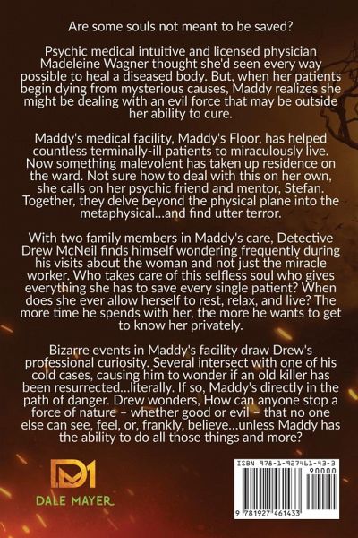 This is the 3rd Psychic Visions Novel from USA Today Bestselling author Dale Mayer. Are some souls not meant to be saved? Psychic medical intuitive and licensed physician Madeleine Wagner thought she'd seen every way possible to heal a diseased body. But, when her patients begin dying from mysterious causes, Maddy realizes she might be dealing with an evil force that may be outside her ability to cure.Maddy's medical facility, Maddy's Floor, has helped countless terminally-ill patients to miraculously live. Now something malevolent has taken up residence on the ward. Not sure how to deal with this on her own, she calls on her psychic friend and mentor, Stefan. Together, they delve beyond the physical plane into the metaphysical...and find utter terror. With two family members in Maddy's care, Detective Drew McNeil finds himself wondering frequently during his visits about the woman and not just the miracle worker. Who takes care of this selfless soul who gives everything she has to save every single patient? When does she ever allow herself to rest, relax, and live? The more time he spends with her, the more he wants to get to know her privately. Bizarre events in Maddy's facility draw Drew's professional curiosity. Several intersect with one of his cold cases, causing him to wonder if an old killer has been resurrected...literally. If so, Maddy's directly in the path of danger. Drew wonders, How can anyone stop a force of nature - whether good or evil - that no one else can see, feel, or, frankly, believe...unless Maddy has the ability to do all those things and more?