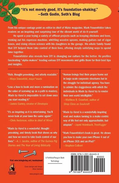 "It's not merely good, it's foundation-shaking." -Seth Godin From his unique vantage point as editor-in-chief of Make magazine, the hub of the do-it-yourself movement, Mark Frauenfelder takes readers on an inspiring and surprising tour of the vibrant world of DIY. Frauenfelder spent a year trying a variety of offbeat projects such as keeping chickens and bees, tricking out his espresso machine, whittling wooden spoons, making guitars out of cigar boxes, and doing citizen science with his daughters in the garage. His whole family found that DIY helped them take control of their lives, offering deeply satisfying alternatives for spending time together. Working with their hands and minds helped them feel more engaged with the world around them. Frauenfelder also profiles fascinating "alpha makers" leading various DIY movements and grills them for their best tips and insights. He offers a unique perspective on how earning a few calluses can be far more rewarding than another trip to the mall.