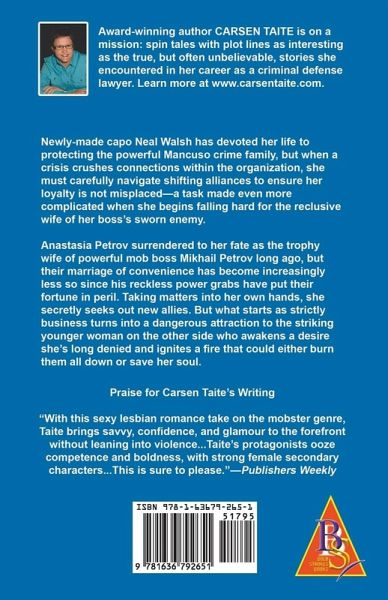 Newly-made capo Neal Walsh has devoted her life to protecting the powerful Mancuso crime family, but when a crisis crushes connections within the organization, she must carefully navigate shifting alliances to ensure her loyalty is not misplaced--a task made even more complicated when she begins falling hard for the reclusive wife of her boss's sworn enemy. Anastasia Petrov surrendered to her fate as the trophy wife of powerful mob boss Mikhail Petrov long ago, but their marriage of convenience has become increasingly less so since his reckless power grabs have put their fortune in peril. Taking matters into her own hands, she secretly seeks out new allies. But what starts as strictly business turns into a dangerous attraction to the striking younger woman on the other side who awakens a desire she's long denied and ignites a fire that could either burn them all down or save her soul.