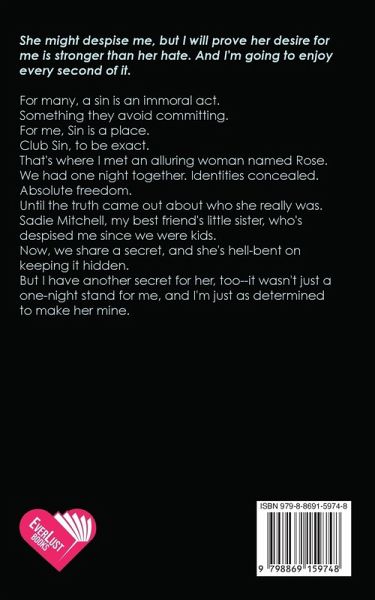 She might despise me, but I will prove her desire for me is stronger than her hate. And I'm going to enjoy every second of it. For many, a sin is an immoral act. Something they avoid committing. For me, Sin is a place. Club Sin, to be exact. That's where I met an alluring woman named Rose. We had one night together. Identities concealed. Absolute freedom. Until the truth came out about who she really was. Sadie Mitchell, my best friend's little sister, who's despised me since we were kids. Now, we share a secret, and she's hell-bent on keeping it hidden. But I have another secret for her, too--it wasn't just a one-night stand for me, and I'm just as determined to make her mine.