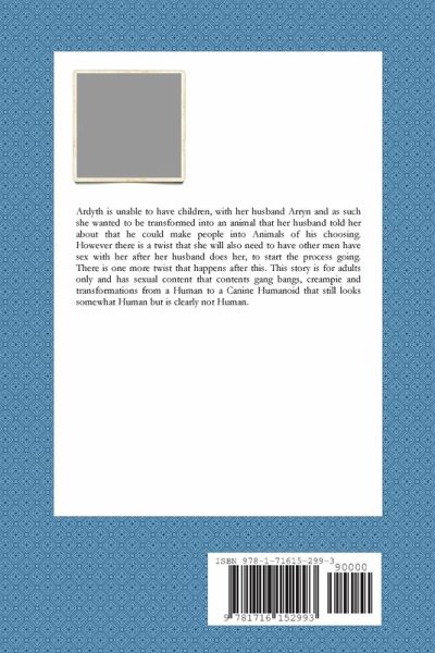 Ardyth is unable to have children, with her husband Arryn and as such she wanted to be transformed into an animal that her husband told her about that he could make people into Animals of his choosing. However there is a twist that she will also need to have other men have sex with her after her husband does her, to start the process going. There is one more twist that happens after this. This story is for adults only and has sexual content that contents gang bangs, creampie and transformations from a Human to a Canine Humanoid that still looks somewhat Human but is clearly not Human.