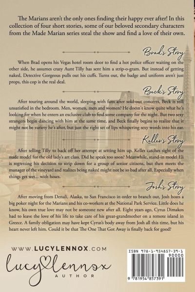The Marians aren't the only ones finding their happy ever after! In this collection of four short stories, some of our beloved secondary characters from the Made Marian series steal the show and find a love of their own. These stories range from 7k to 10k words and feature plenty of laughs, Marian cameos, and love. A suggested reading order can be found in the Look Inside, but you do not need to have read any other Made Marian novel to enjoy these stories. Please be aware that two of these stories can also be found in the Made Marian Collection bundle. Brad's Story:When Brad opens his Vegas hotel room door to find a hot police officer waiting on the other side, he assumes crazy Aunt Tilly has sent him a strip-o-gram. But instead of getting naked, Detective Gorgeous pulls out his cuffs. Turns out, the badge and uniform aren't just props, this cop is the real deal. Beck's Story:After touring around the world, sleeping with fans after sold-out concerts, Beck is still unsatisfied in the bedroom. Men, women, men and women? He doesn't know quite what he's looking for when he enters an exclusive club to find some company for the night. But two sexy strangers begin dancing with him at the same time, and Beck finally begins to realize that it might not be variety he's after, but just the right set of lips whispering sexy words into his ear. Keller's Story:After telling Tilly to back off her attempt at setting him up, Keller catches sight of the nude model for the old lady's art class. Did he speak too soon? Meanwhile, stand-in model Eli is regretting his decision to strip down for a group of senior citizens, but then meets the manager of the vineyard and realizes being naked might not be so bad after all. Especially when things get wet... like really very wet... with hoses. Josh's Story:After moving from Denali, Alaska, to San Francisco in order to branch out, Josh hosts a big poker night for the Marians and his co-workers at the National Park Service. Little does he know, his own true love may not be someone new after all. Eight years ago, Cyrus Dimakos had to leave the love of his life to take care of his great-grandmother on a remote island in Greece. A family obligation may have kept Cyrus's body away from Josh all this time, but his heart never left him. Could it be that The One That Got Away is finally back for good?