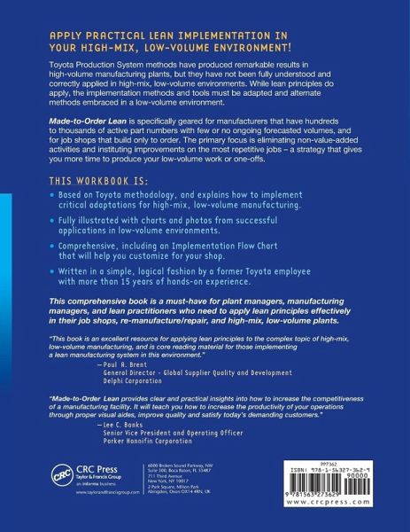 Toyotaâ s methods have rendered remarkable results in high-volume plants, but they have not been fully understood and correctly applied in high-mix, low-volume environments. While lean principles apply in such an environment, implementation methods and tools must be adapted and alternate methods embraced.