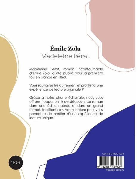 Madeleine Férat, roman incontournable d'Émile Zola, a été publié pour la première fois en France en 1868. Vous souhaitez lire autrement et profiter d¿une expérience de lecture originale ? Grâce à notre charte éditoriale, nous vous offrons l¿opportunité de découvrir ce roman dans une édition aérée et dans un grand format, facilitant ainsi votre lecture pour vous permettre de profiter d¿une expérience de lecture unique.